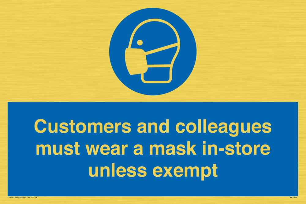 Customers and colleagues must wear a mask in-store unless exempt Sign