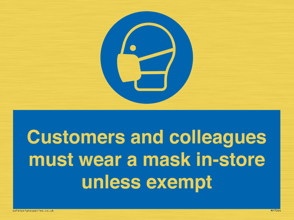Customers and colleagues must wear a mask in-store unless exempt Sign