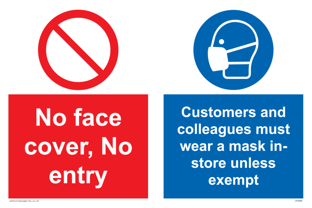 No face cover, no entry. Customers and colleagues must wear a mask in-store unless exempt.