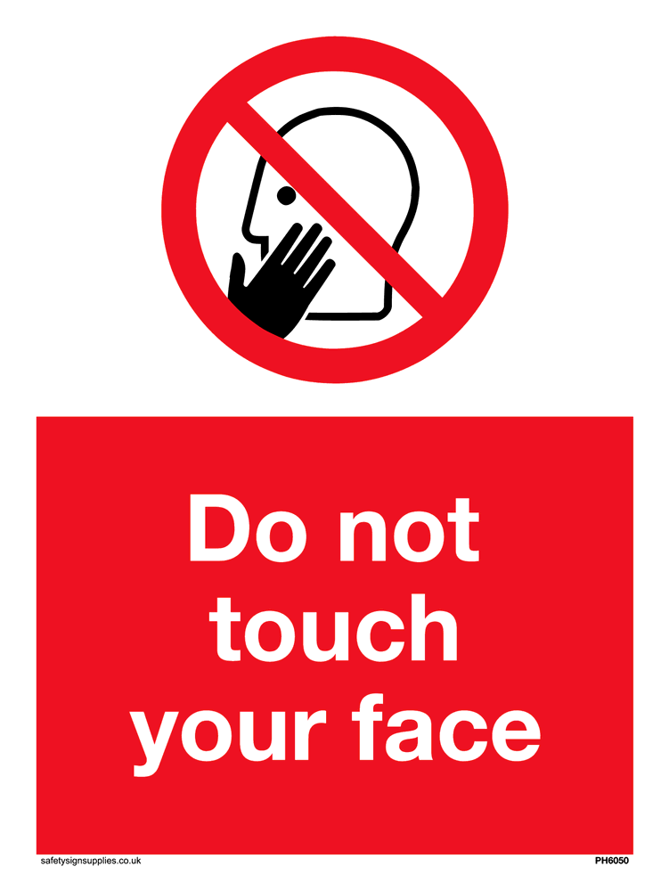 This sign contains a do not touch symbol - hand in black with red prohibition circle crossed through with diagonal line.