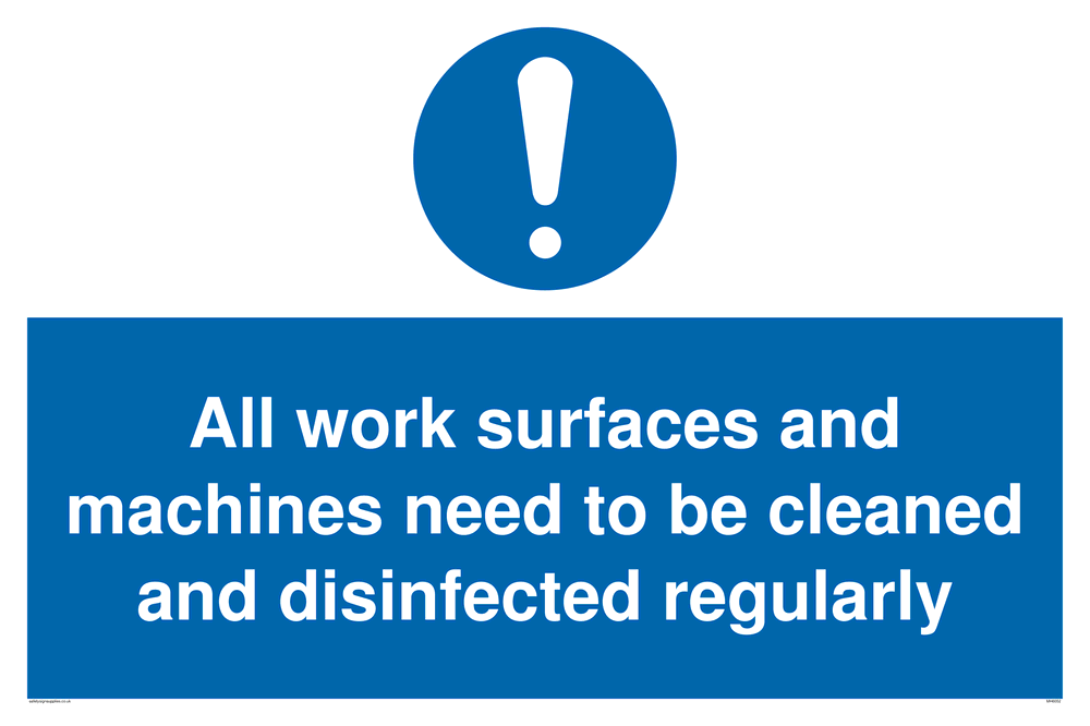Work surfaces and machine need to be disinfected regularly