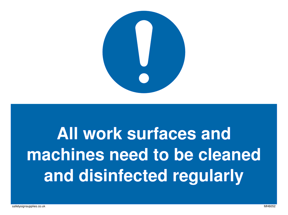 Work surfaces and machine need to be disinfected regularly