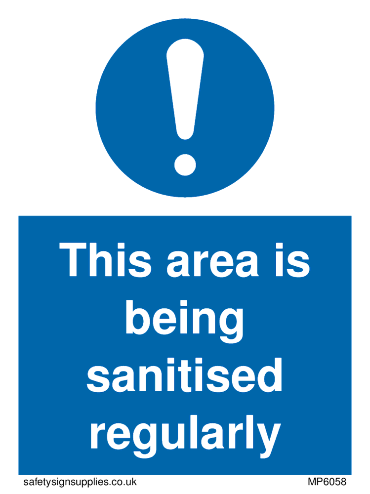 This area is being sanitised regularly sign