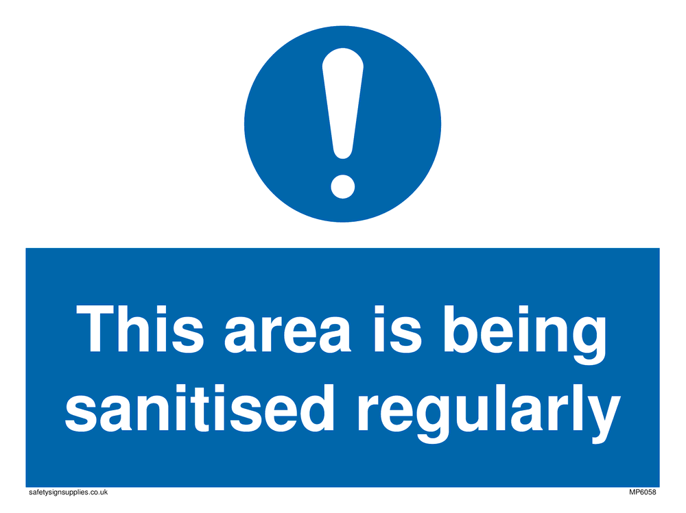 This area is being sanitised regularly Sign