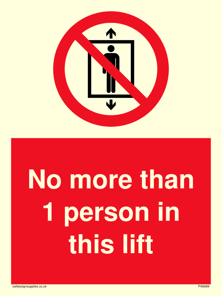 No more than 1 person in this lift Sign