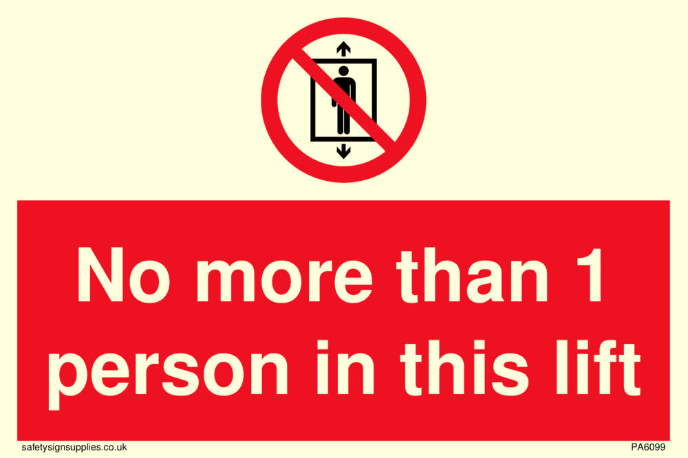 No more than 1 person in this lift Sign