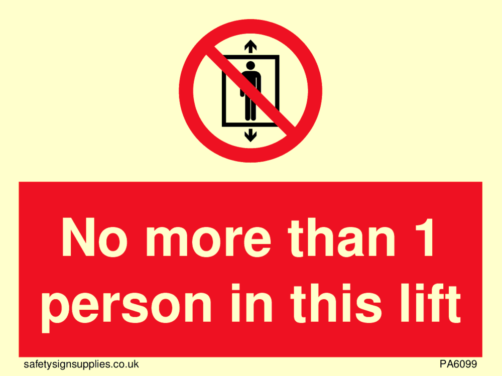 Sign Text: No more than 1 person in this lift