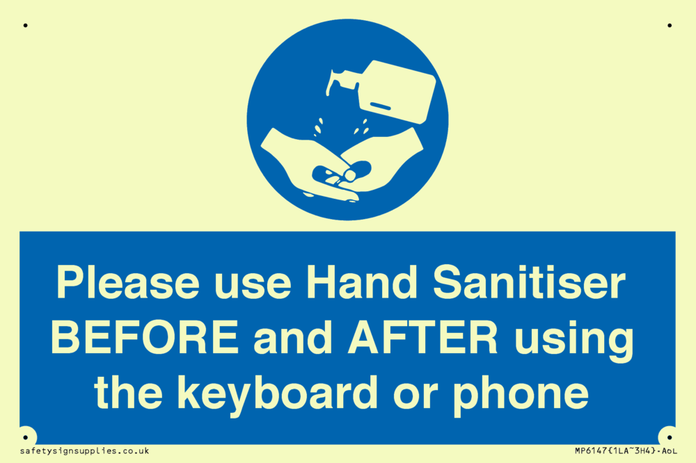 Please use Hand Sanitiser BEFORE and AFTER using the keyboard or phone Sign