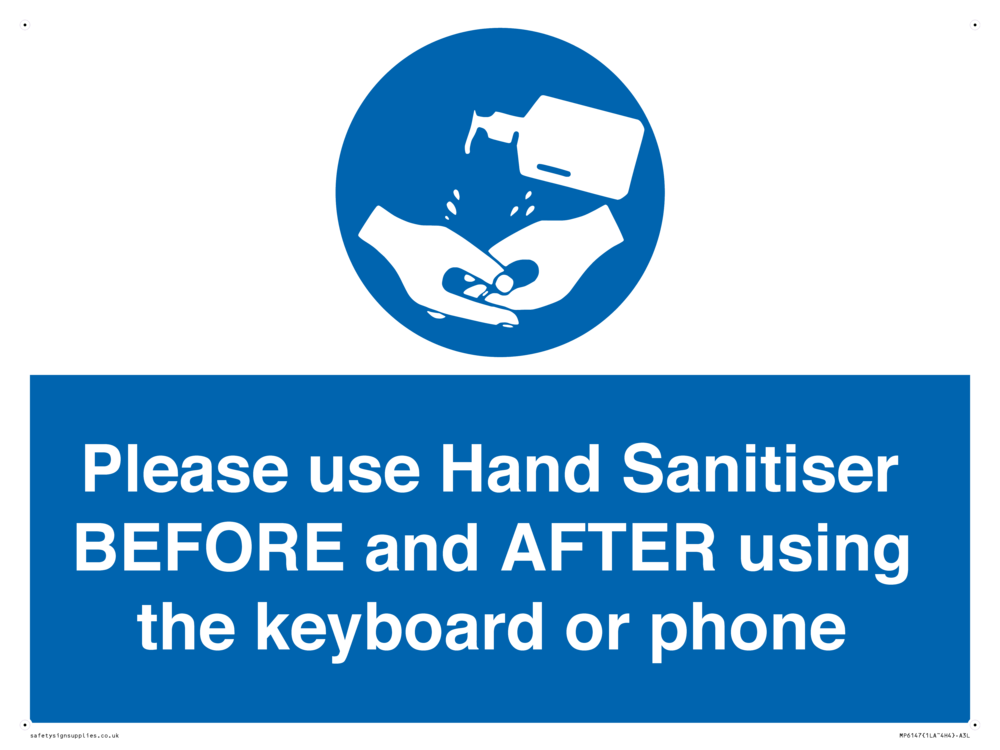 Please use Hand Sanitiser BEFORE and AFTER using the keyboard or phone Sign