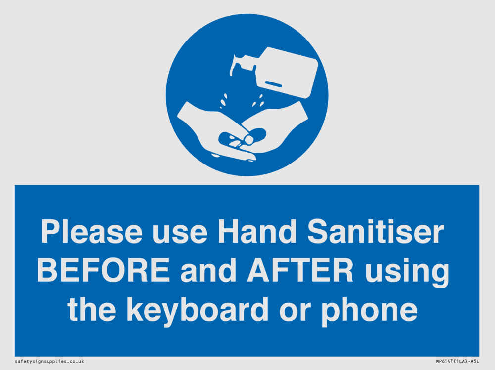 Please use Hand Sanitiser BEFORE and AFTER using the keyboard or phone Sign