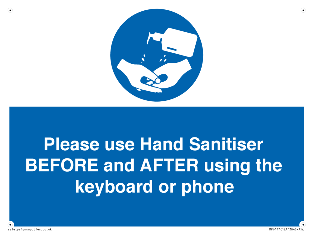 Sign Text: Please use Hand Sanitiser BEFORE and AFTER using the keyboard or phone