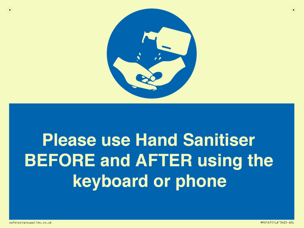 Please use Hand Sanitiser BEFORE and AFTER using the keyboard or phone Sign