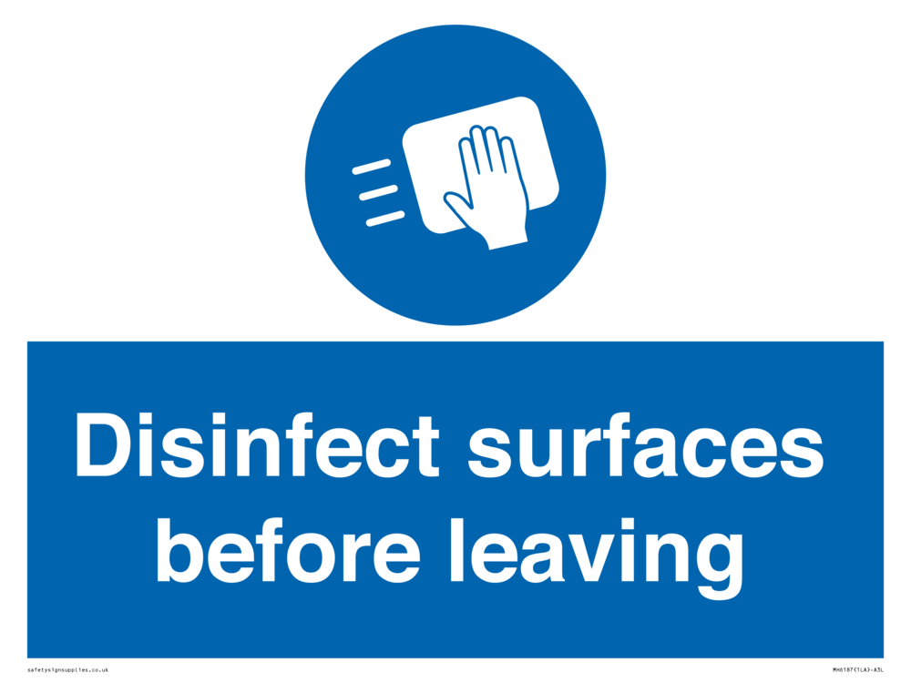 Disinfect surfaces before leaving Sign