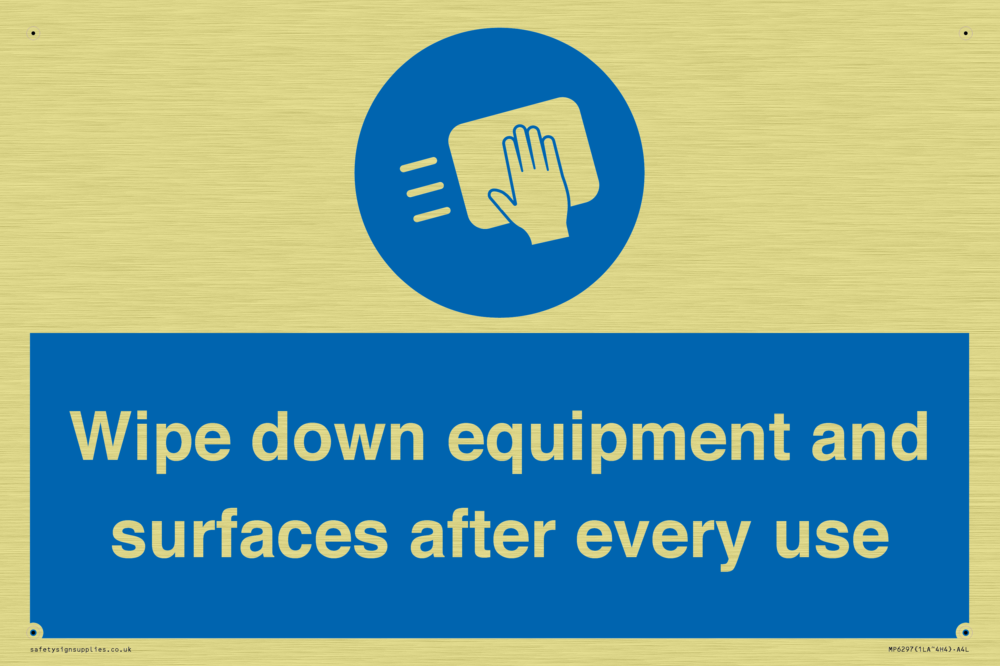 Wipe down equipment and surfaces after every use Sign