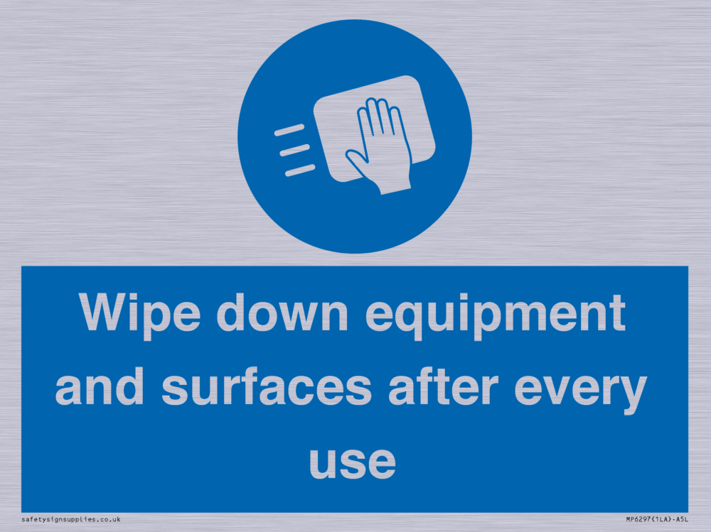 Wipe down equipment and surfaces after every use Sign