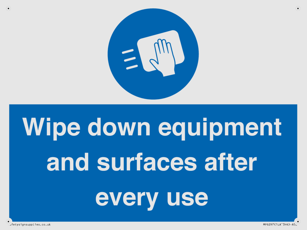Wipe down equipment and surfaces after every use Sign