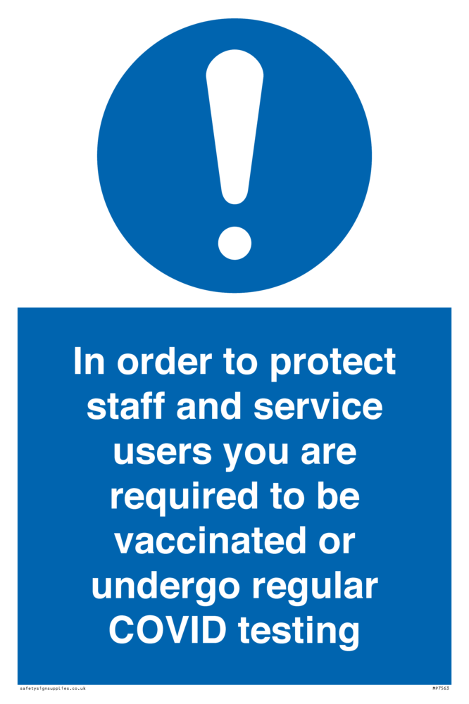 In order to protect staff and service users you are required to be vaccinated or undergo regular COVID testing Sign