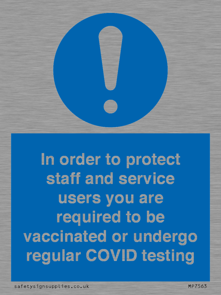 In order to protect staff and service users you are required to be vaccinated or undergo regular COVID testing Sign