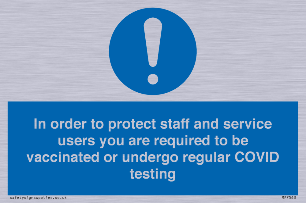 In order to protect staff and service users you are required to be vaccinated or undergo regular COVID testing Sign