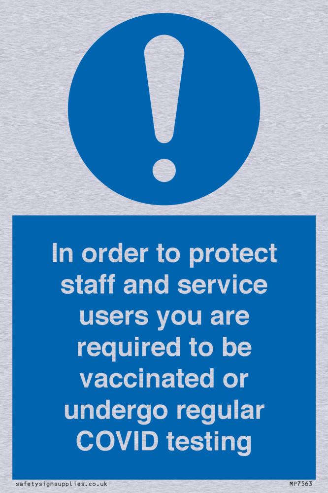 In order to protect staff and service users you are required to be vaccinated or undergo regular COVID testing Sign