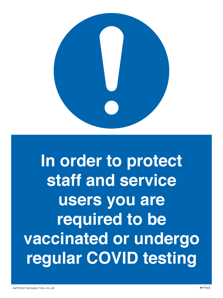 In order to protect staff and service users you are required to be vaccinated or undergo regular COVID testing Sign