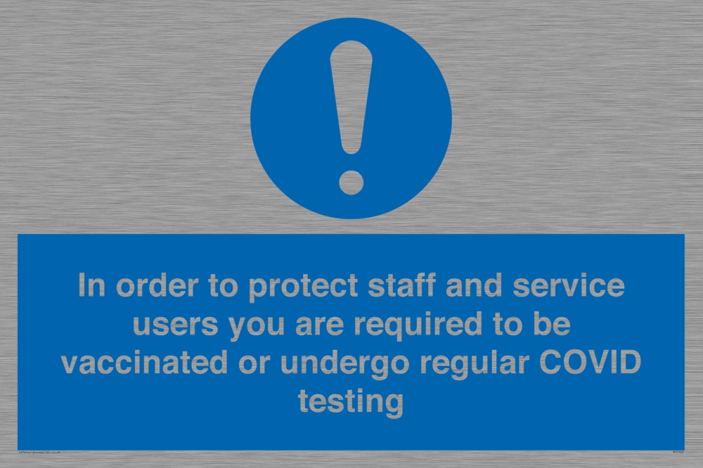 In order to protect staff and service users you are required to be vaccinated or undergo regular COVID testing Sign