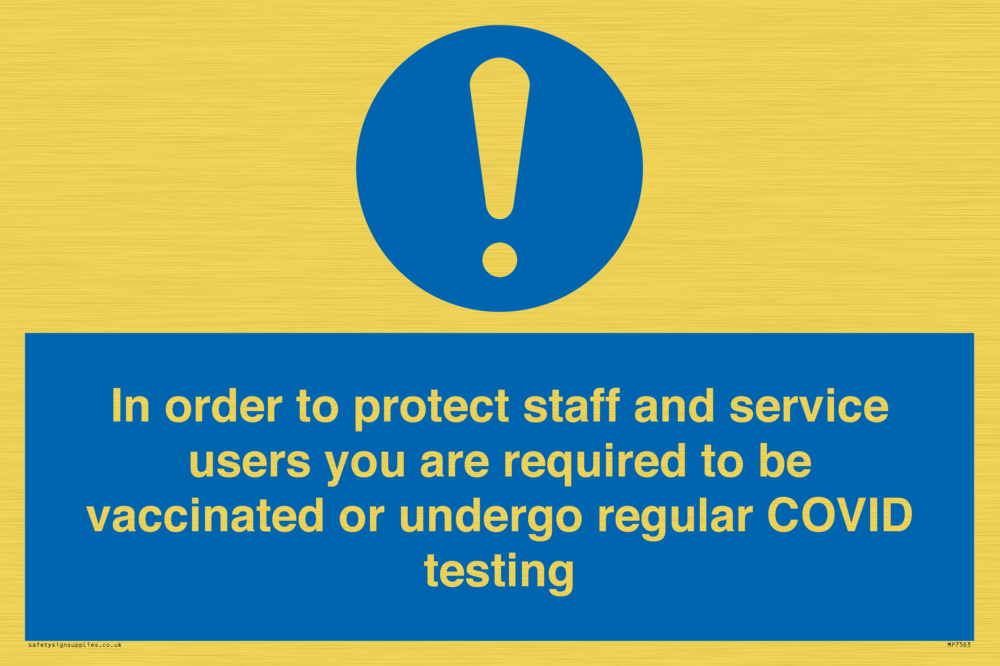 In order to protect staff and service users you are required to be vaccinated or undergo regular COVID testing Sign