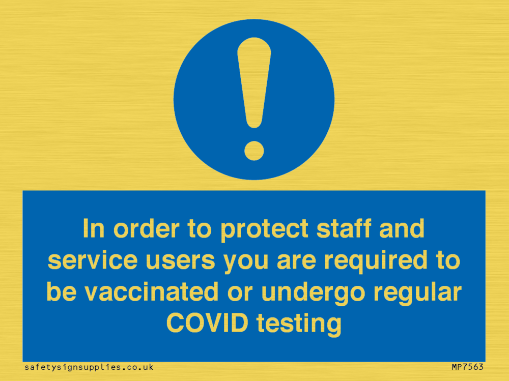 In order to protect staff and service users you are required to be vaccinated or undergo regular COVID testing Sign