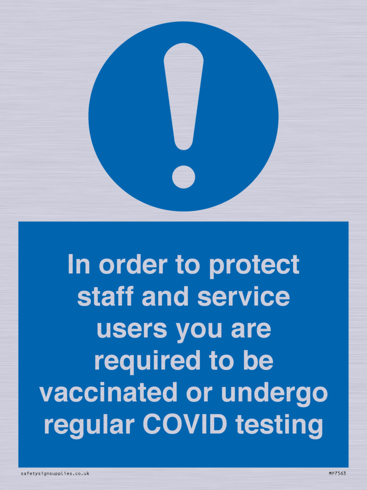In order to protect staff and service users you are required to be vaccinated or undergo regular COVID testing Sign