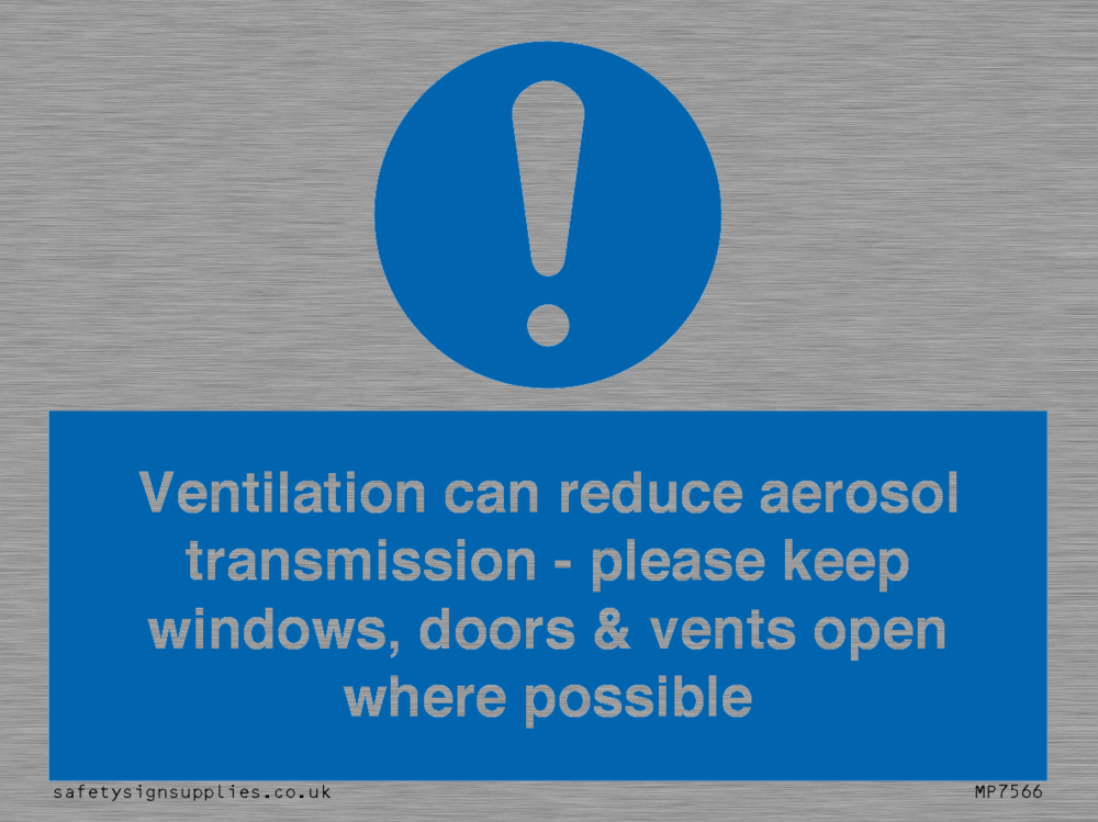 Ventilation can reduce aerosol transmission - please keep windows, doors & vents open where possible Sign