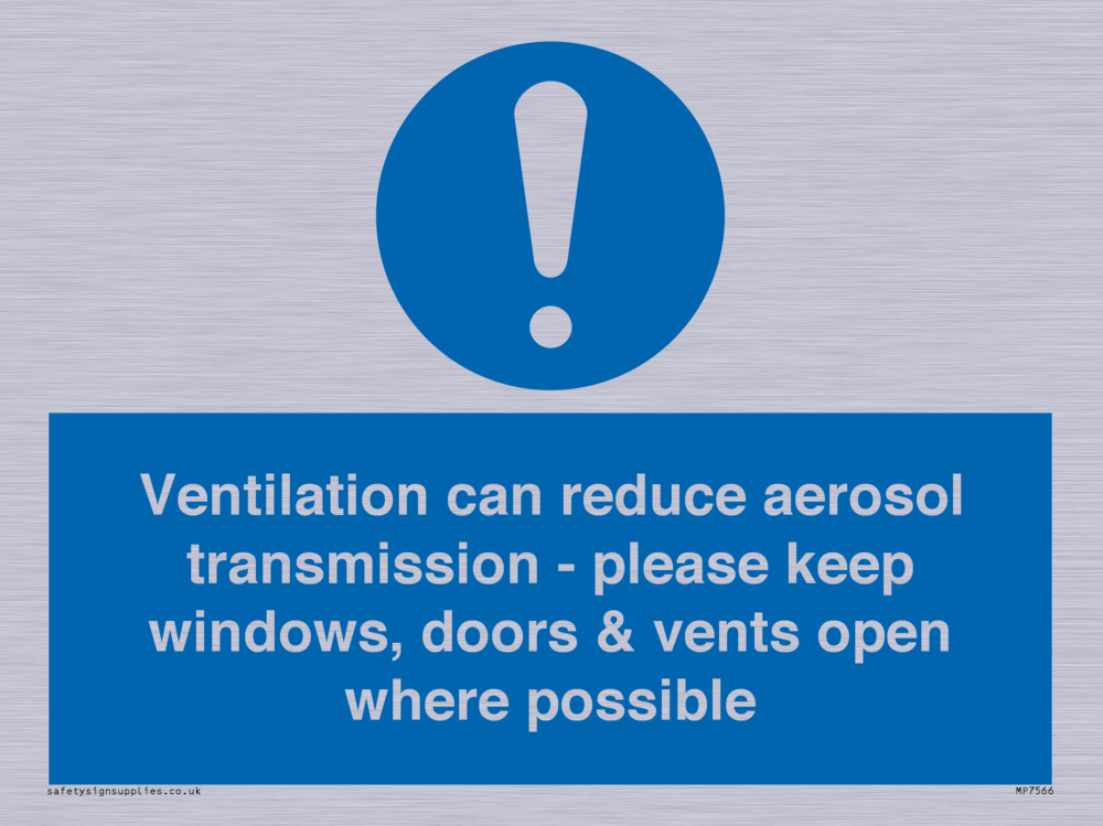 Ventilation can reduce aerosol transmission - please keep windows, doors & vents open where possible Sign