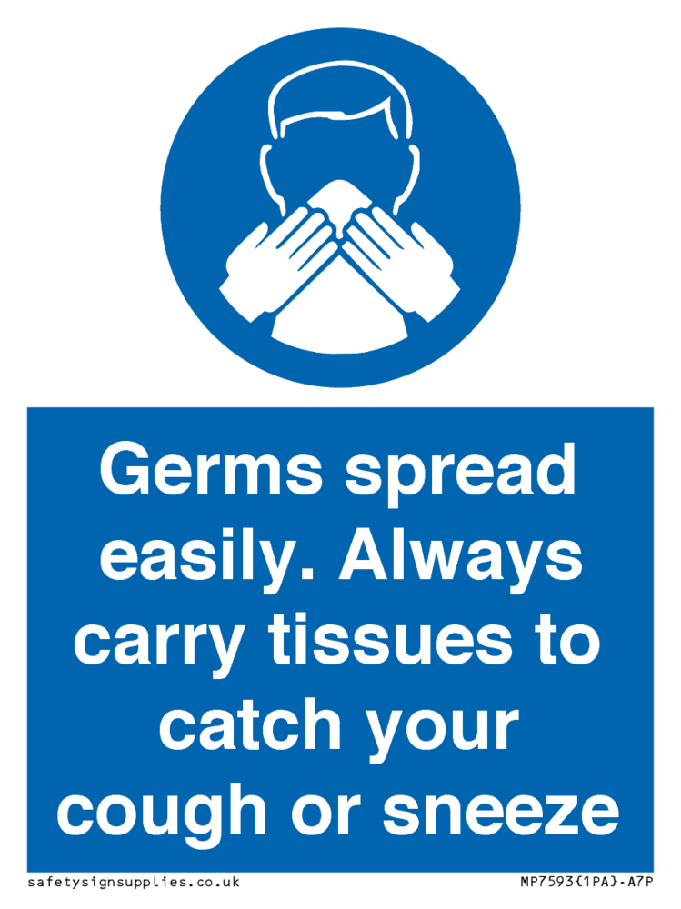 Germs spread easily. Always carry tissues to catch your cough or sneeze Sign