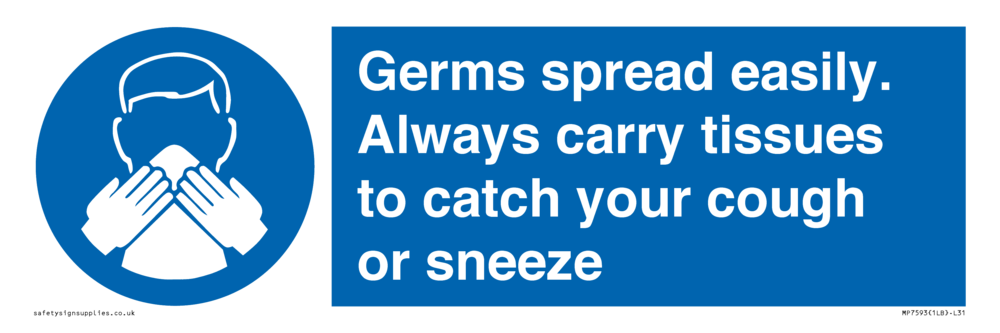 Germs spread easily. Always carry tissues to catch your cough or sneeze Sign