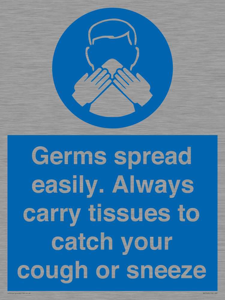 Germs spread easily. Always carry tissues to catch your cough or sneeze Sign