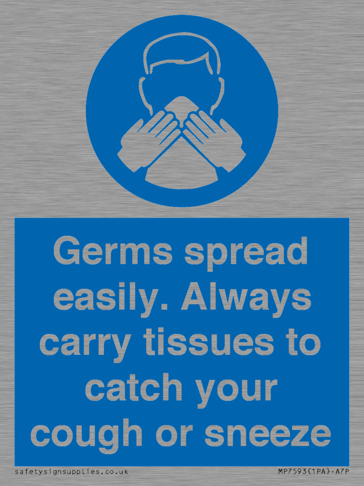 Germs spread easily. Always carry tissues to catch your cough or sneeze Sign
