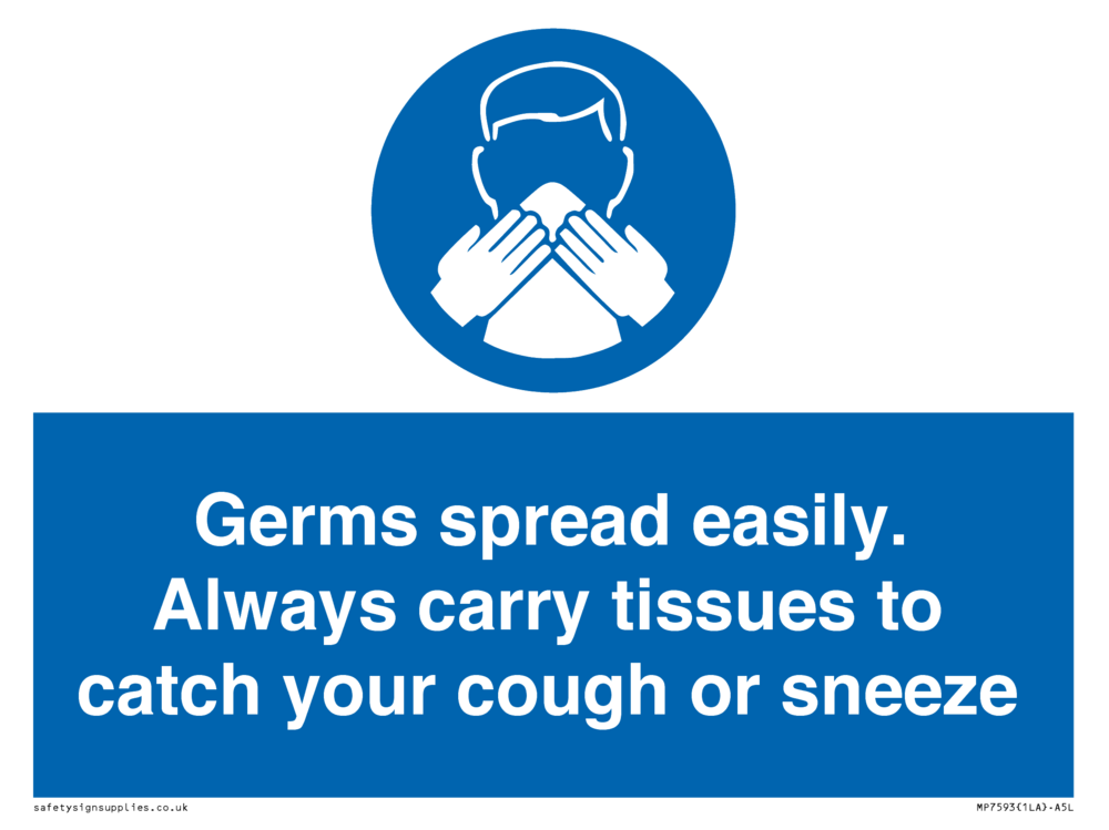 Germs spread easily. Always carry tissues to catch your cough or sneeze Sign