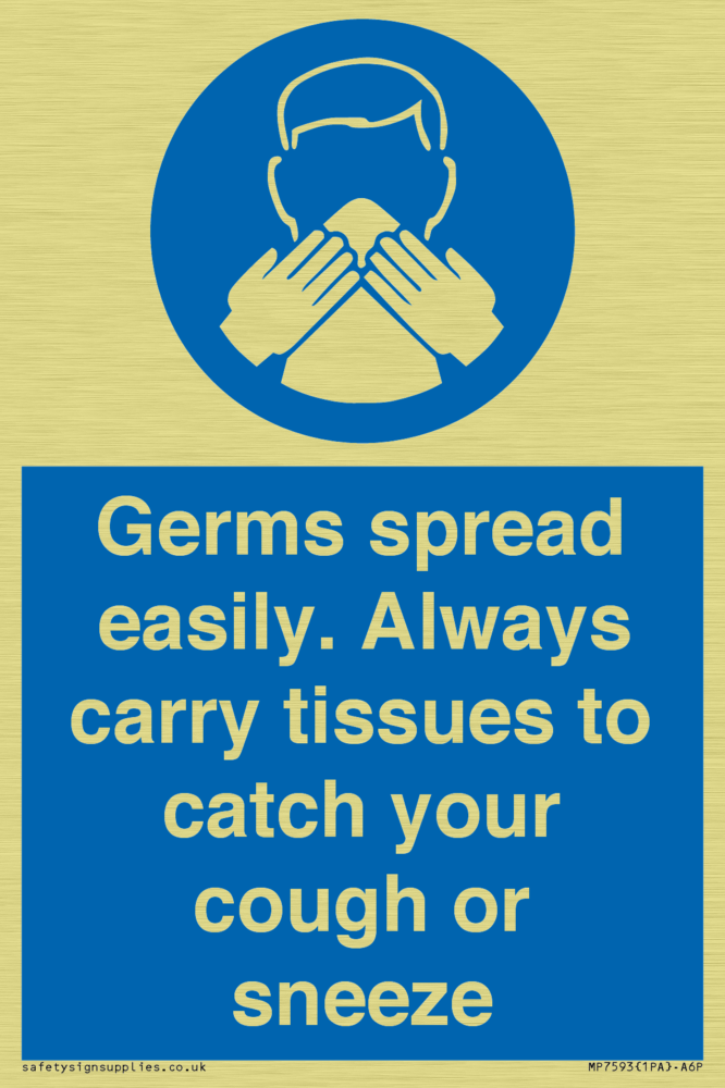 Germs spread easily. Always carry tissues to catch your cough or sneeze Sign