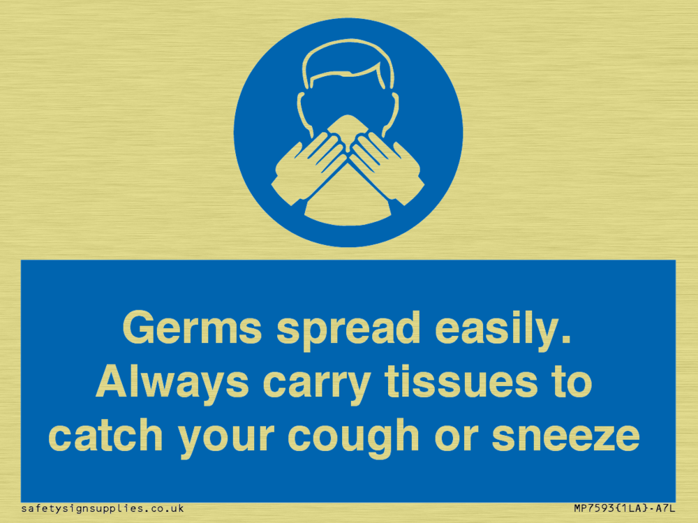 Germs spread easily. Always carry tissues to catch your cough or sneeze Sign