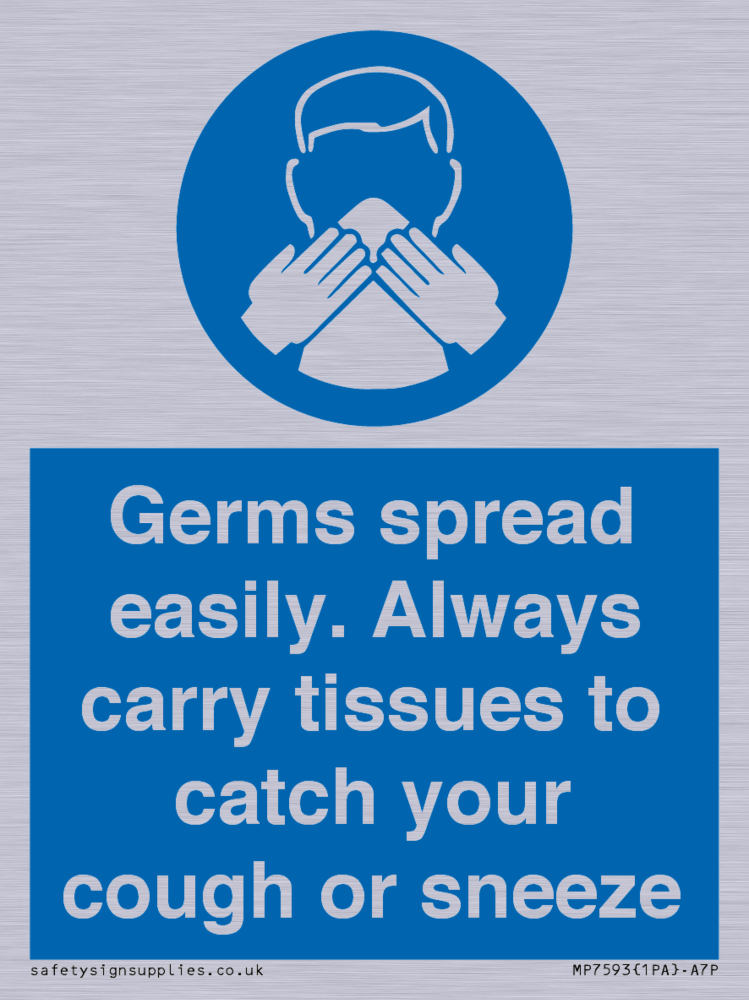 Germs spread easily. Always carry tissues to catch your cough or sneeze Sign