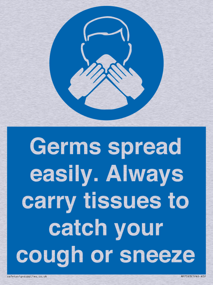 Germs spread easily. Always carry tissues to catch your cough or sneeze Sign