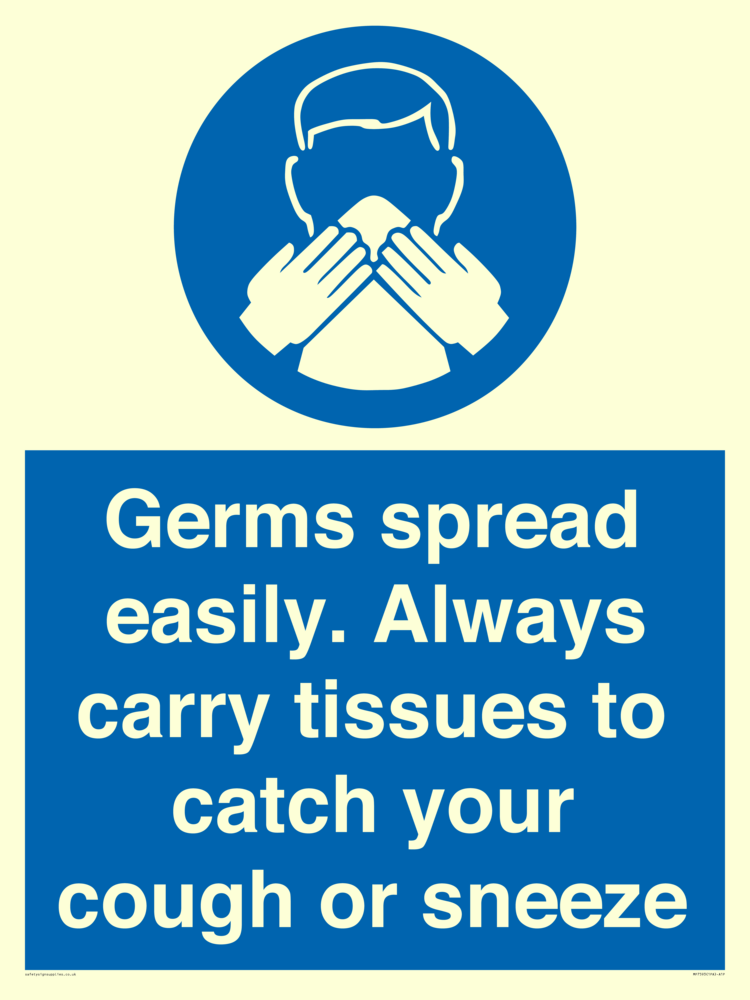 Germs spread easily. Always carry tissues to catch your cough or sneeze Sign