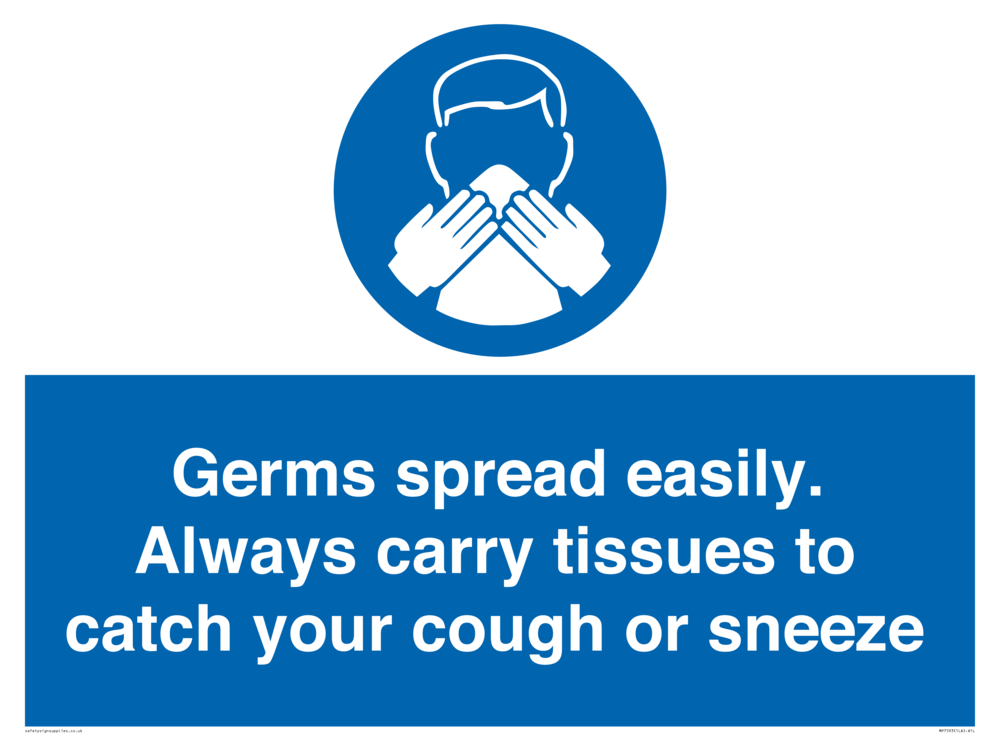 Germs spread easily. Always carry tissues to catch your cough or sneeze Sign