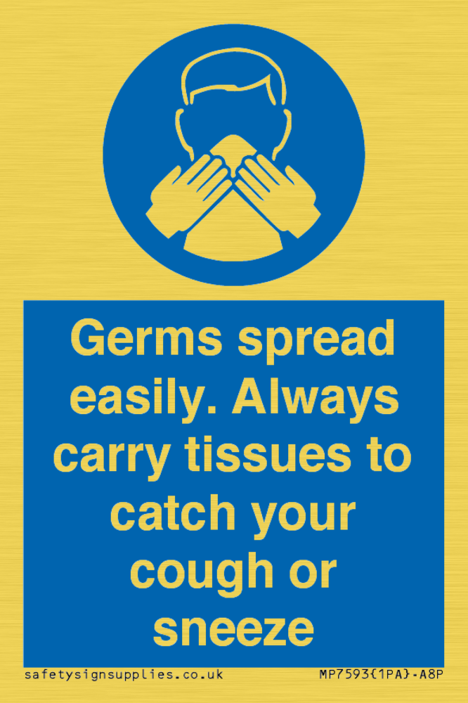 Germs spread easily. Always carry tissues to catch your cough or sneeze Sign