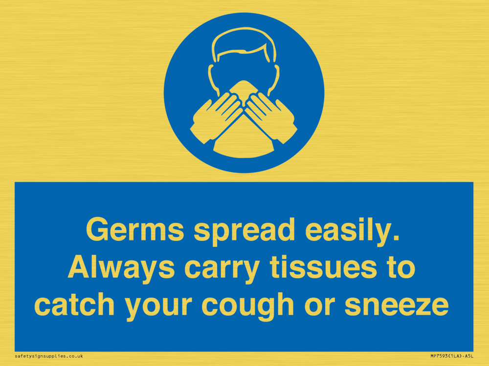 Germs spread easily. Always carry tissues to catch your cough or sneeze Sign