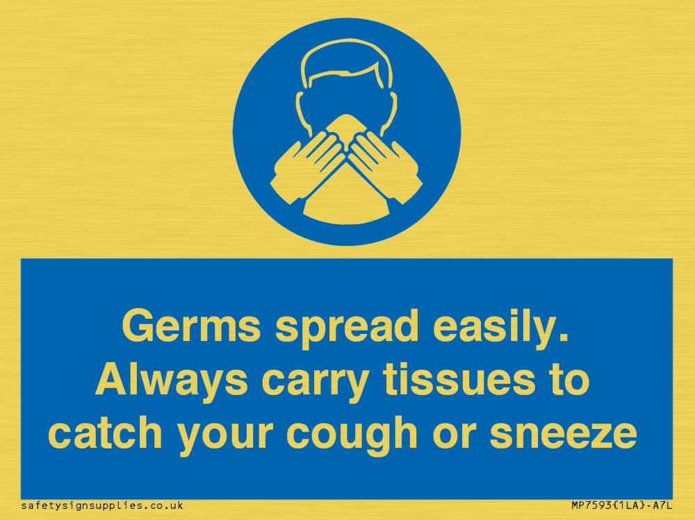 Germs spread easily. Always carry tissues to catch your cough or sneeze Sign