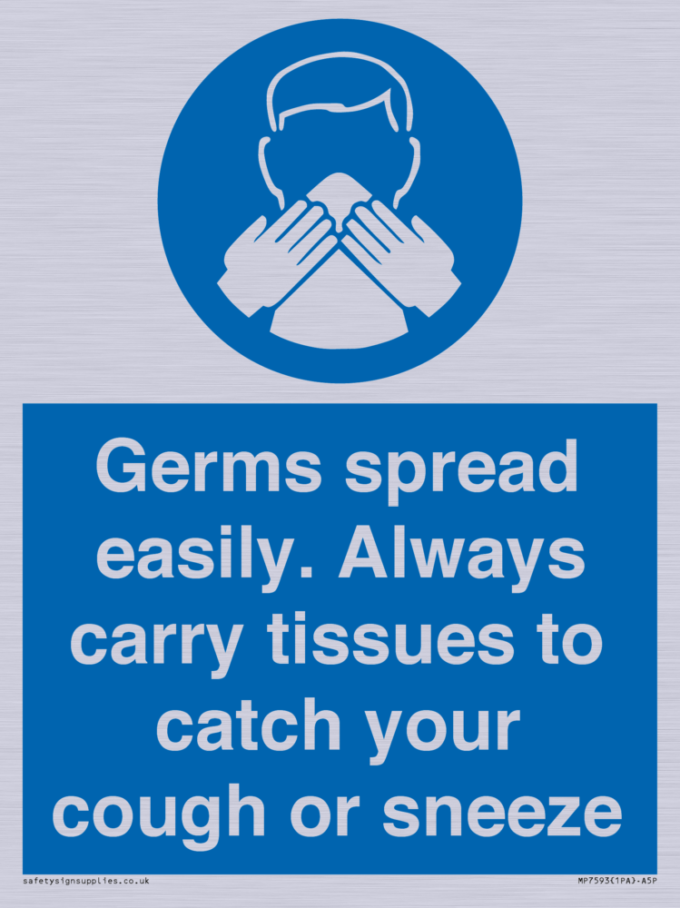 Germs spread easily. Always carry tissues to catch your cough or sneeze Sign