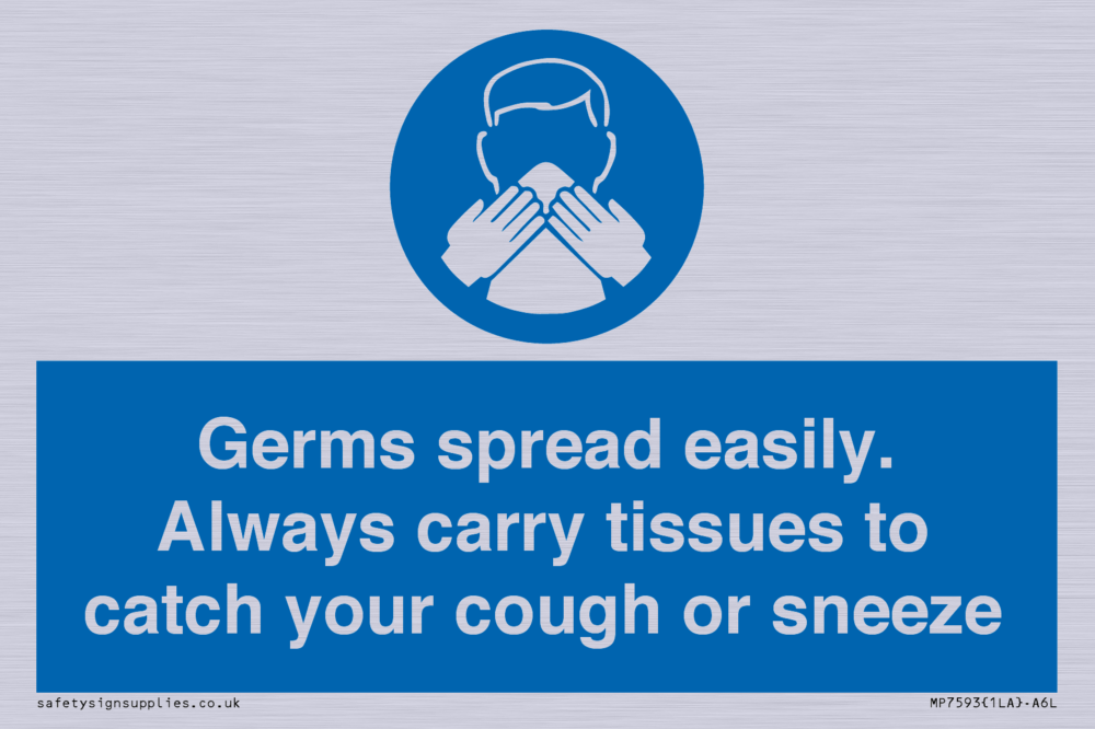 Germs spread easily. Always carry tissues to catch your cough or sneeze Sign