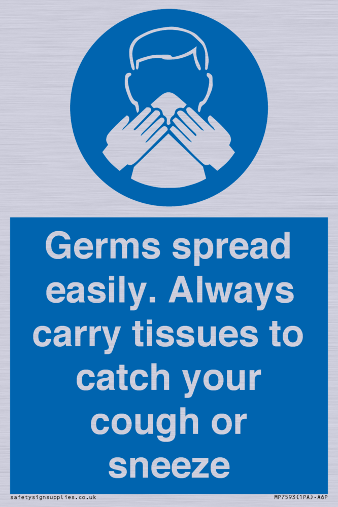 Germs spread easily. Always carry tissues to catch your cough or sneeze Sign