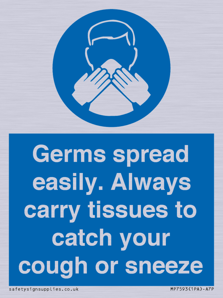 Germs spread easily. Always carry tissues to catch your cough or sneeze Sign
