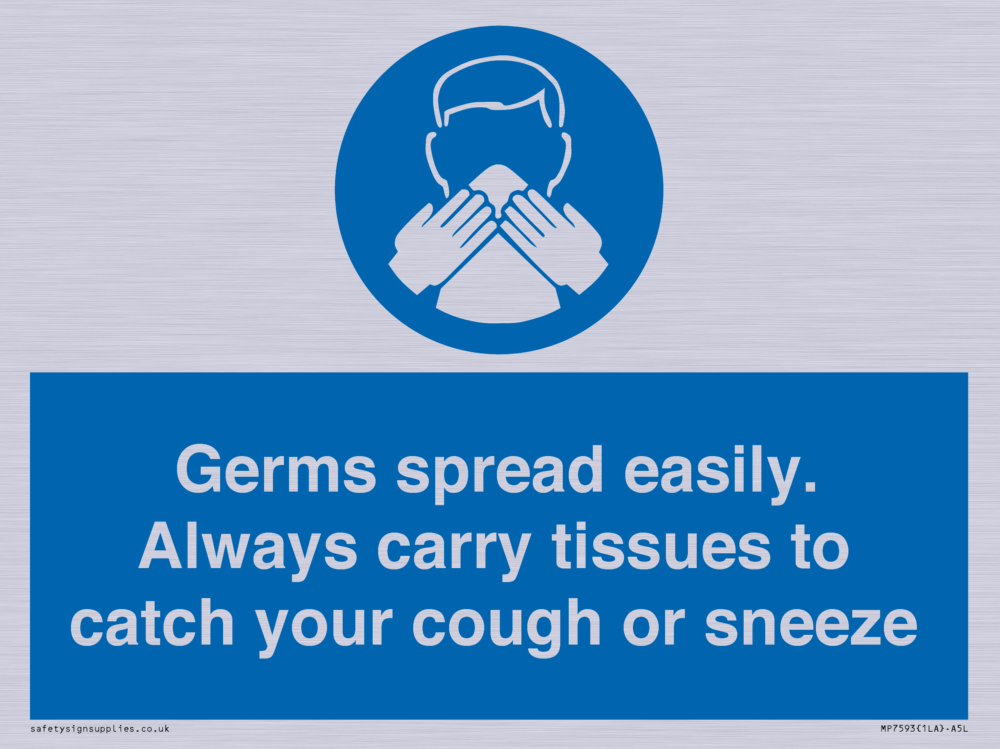 Germs spread easily. Always carry tissues to catch your cough or sneeze Sign